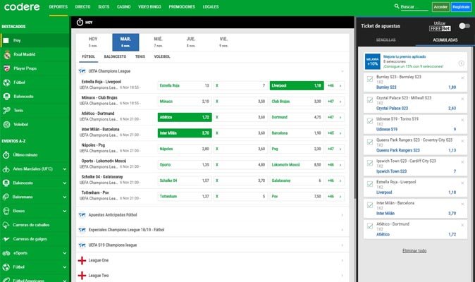 Codere también tiene las funciones básicas que cualquier apostante necesita como partidos retransmitidos en streaming, cerrar apuestas y una app nativa para móviles iOS y Android.